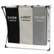وفّر وقتك ومجهودك في فرز الملابس مع هذه السلة المبتكرة المقسمة لثلاثة أجزاء، مما يتيح لك فصل الملابس الملونة عن البيضاء بسهولة تامة داخل هيكل ألمنيوم متين وأنيق.