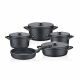 The OMS Wave Granite Set represents the pinnacle of Turkish cookware engineering. This 9-piece collection features a robust diecast aluminum body, providing the thickness and weight of traditional cast iron with the modern convenience of granite. The unique "Wave" texture on the exterior isn't just for style—it aids in structural durability. Equipped with matching granite lids, this set creates an oven-like environment inside the pot, locking in heat and moisture for exceptionally tender results.